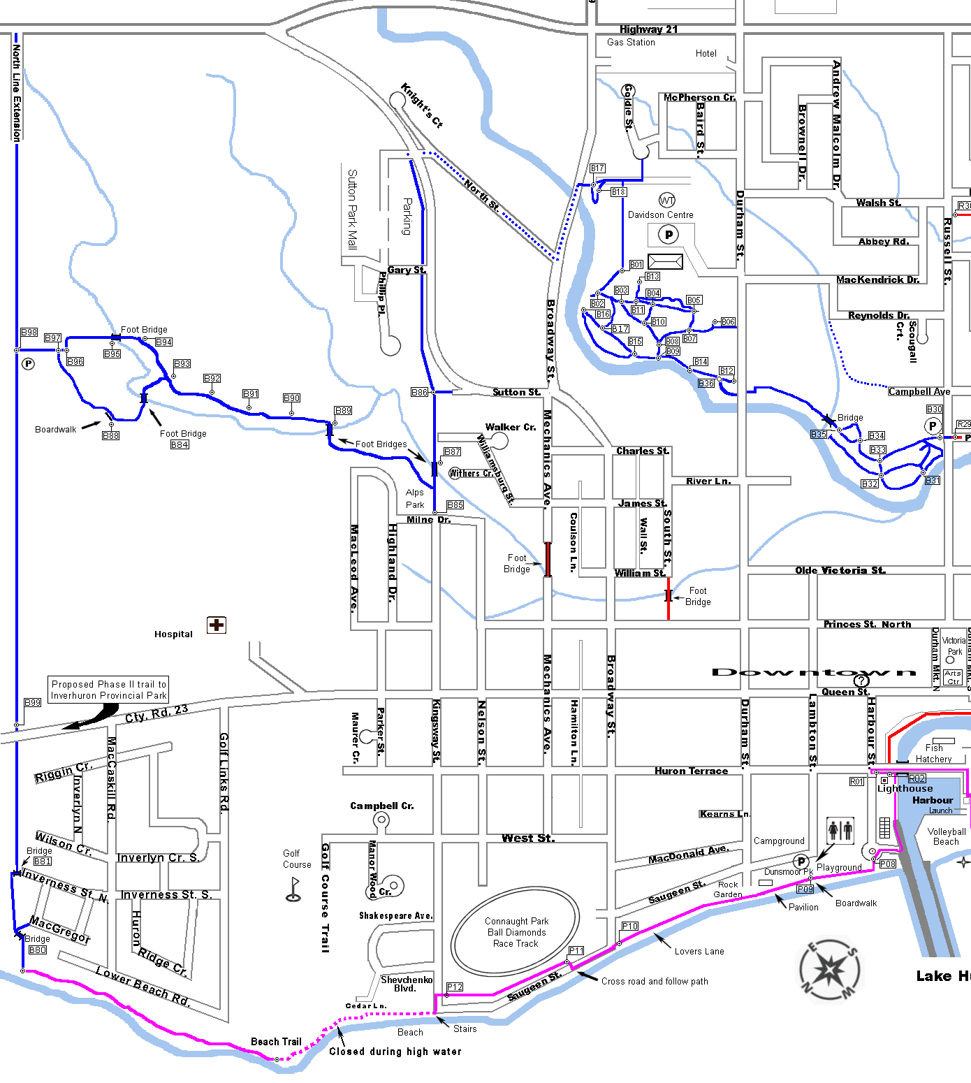 St. the trail begins just east of the bridge (B12). Walk around the gate