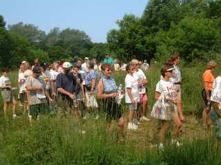 cemetery. The smooth stone dust trail passes 200 recently planted seedlings