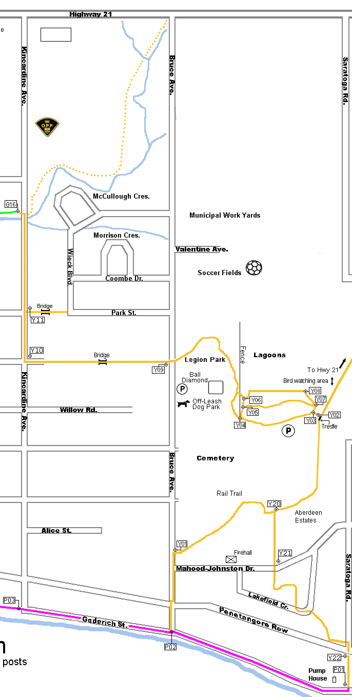 bridge. Cross the river and continue to Kincardine Ave. Walking east on Kincardine Ave you